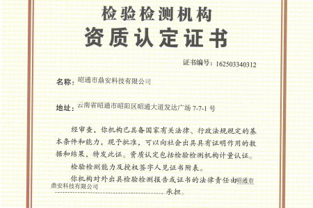 招聘啟示 如何深刻領會習近平新時代中國特色社會主義思想的精神實質和豐富內涵? 昭通首家鑒定機構通過云南省檢驗檢測機構資質認證 中小企業協會信用管理中心會員單位 昭通市鼎安科技有限公司企業信用等級AAA證書